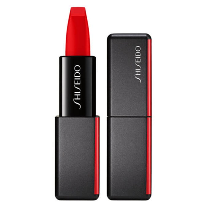 Everlasting Liquid Lipstick in ‘Traviesa’ delivers a neon-bright fire engine red that borders on electric pink. After a true tomato red? Shiseido ModernMatte Powder Lipstick in ‘Night Life’ adds a radioactive shock to the classic hue that will modernise any makeup.