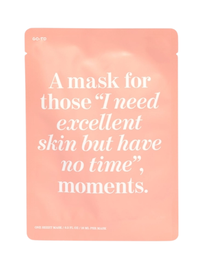 Try: Hada Labo Moisturising Facial Sheet Mask ($4.76 from Priceline), Go-To Skincare Transformazing Sheet Mask ($11 from Go-To Skincare), and Conserving Beauty Thirsty Face Dissolving Face Mask ($16 from Priceline)