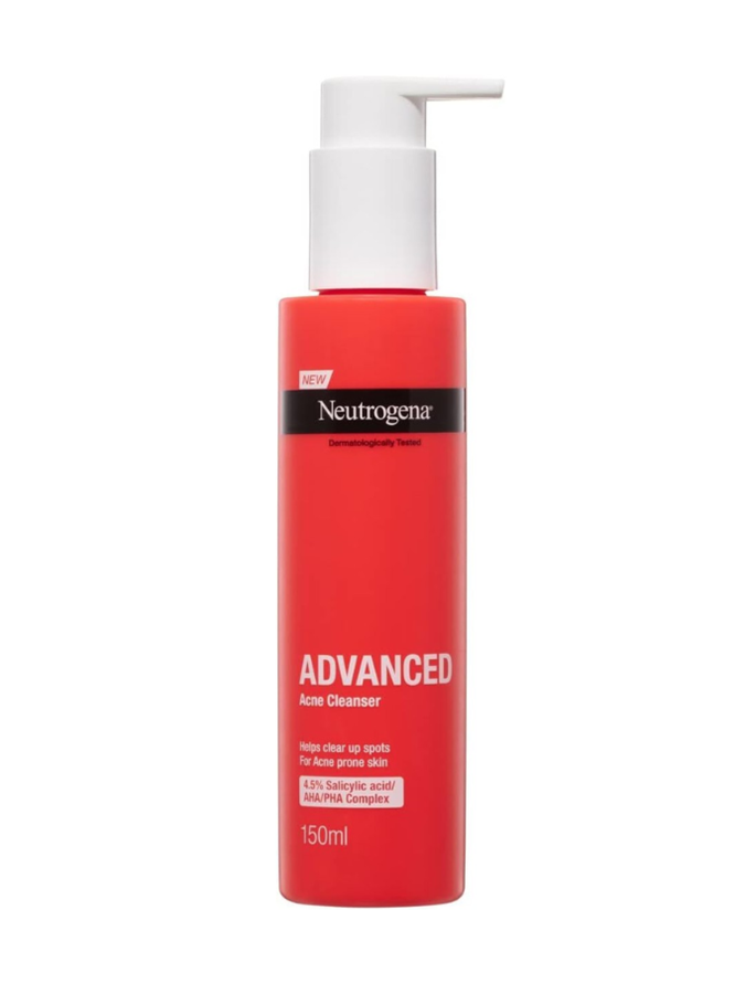"I use the Neutrogena Advanced Acne Cleanser ($12.39 from Chemist Warehouse) because it gives me a deeper clean while still being gentle on my skin. It takes off all the stage dirt and oils, and I know my skin really likes it.”