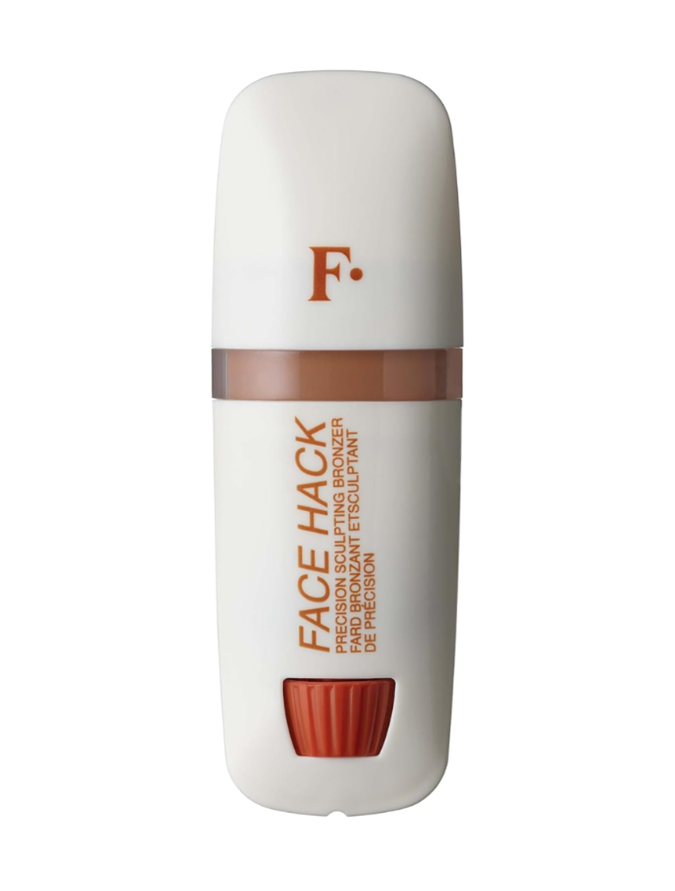 She spot conceals with Nars' Soft Matte Complete Concealer ($56 from MECCA) and a flat concealer brush, and then buffs out the product with her foundation brush. Then to add a bit of colour back to her complexion she haphazardly applies smudges of Freck Beauty's FACE HACK Precision Sculpting Bronzer Stick in 'Medium Tan' (usually $28.18, now on sale for $25.36 from Amazon) on the tops of her cheekbones.