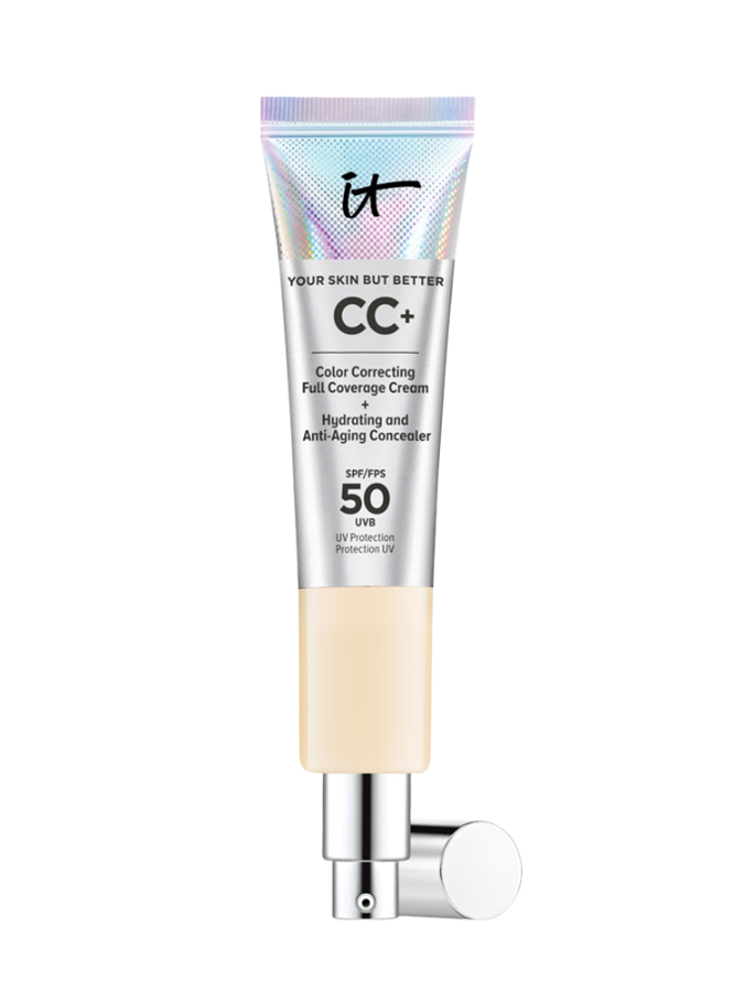 “This is what makes it look like you’re glowing from within,” she explained after applying a layer of IT COSMETICS Your Skin But Better™ CC+™ Cream SPF 50 ($65 at Sephora) over her bronzer. “It covers up any harsh lines.”