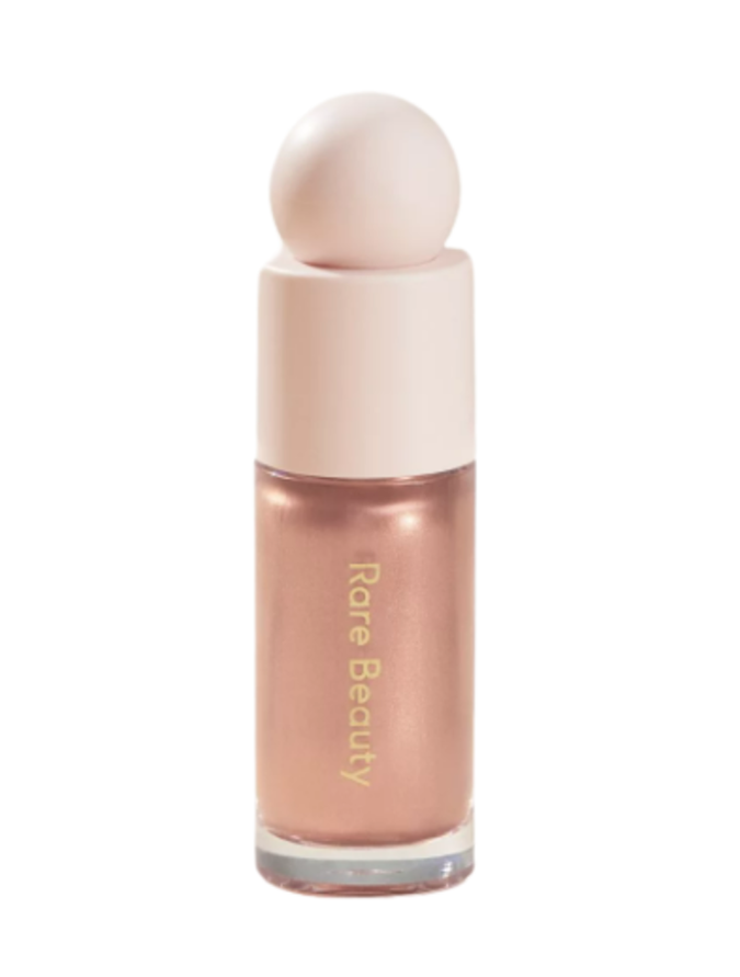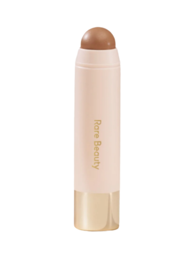 “Then, you want to top that bronzer with a really bronzey highlighter,” Murdick advised before dipping a blush brush into ‘Transcend’ from Rare Beauty ($38 at Sephora).