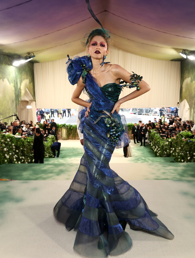 Zendaya took her role as co-chair of the 2024 “Garden of Time” themed Met Gala very seriously. The Challengers actress wore not one but two archival couture gowns designed by John Galliano.